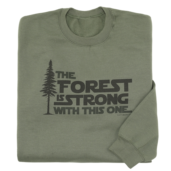 A really fun gift for the right person! This forest green pullover is screen printed with "The Forest Is Strong With This One" in black and dark green. Made of 50/50 cotton/poly fleece. Machine washable. Imported. Available in sizes (S-2X) $39.99.